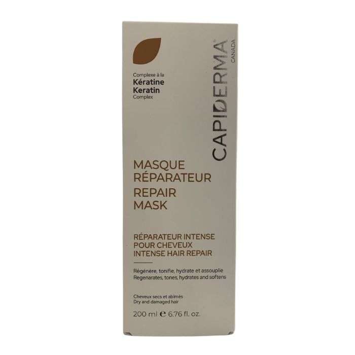 Capiderma Masque traitant réparateur de cheveux intense à la kératine régénère, tonifie, hydrate et assouplie pour cheveux secs et abimés sans formaldéhydes sans parabènes .